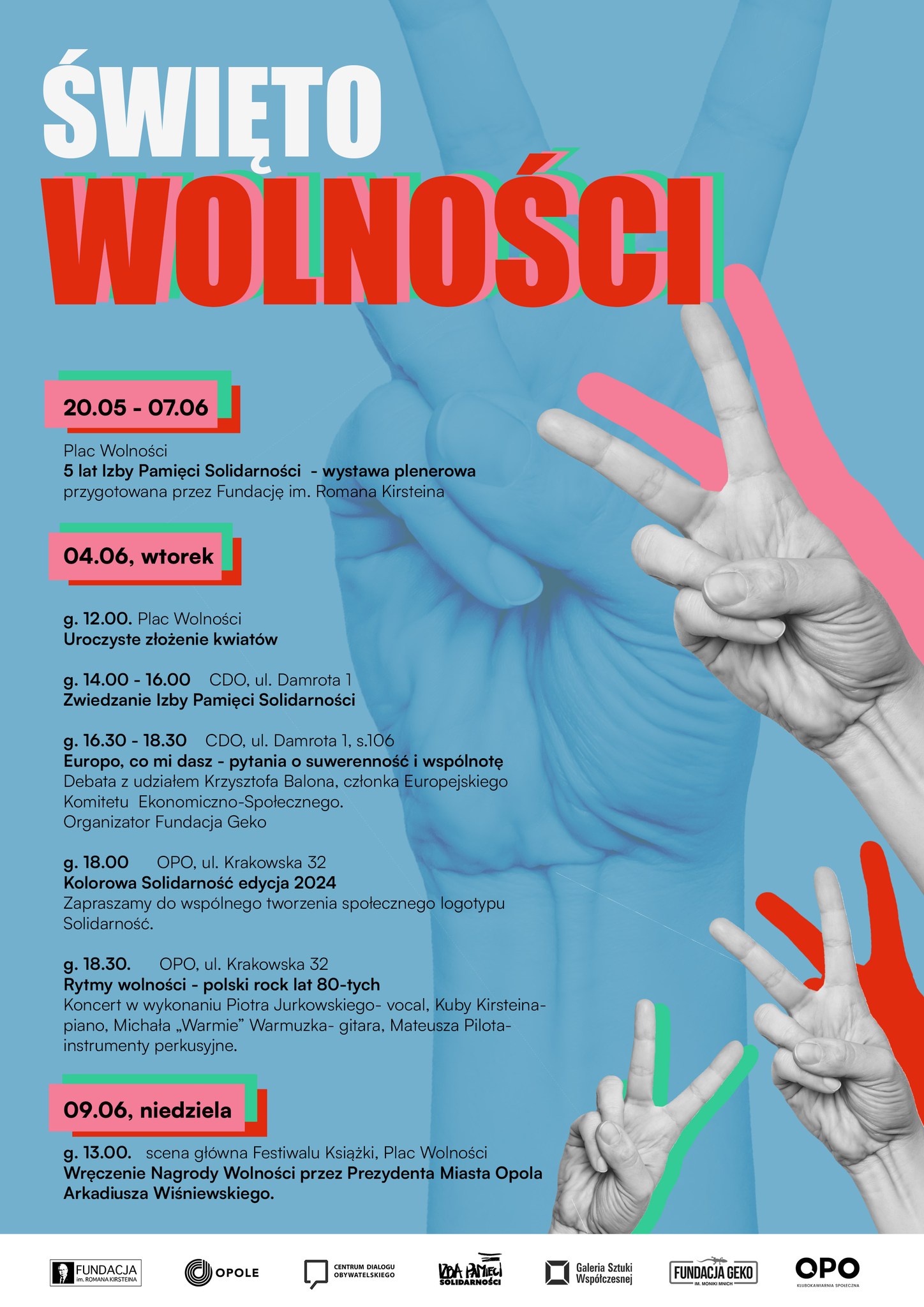 - godz. 13:00 scena główna Festiwalu Książki, Plac Wolności - Wręczenie Nagrody Wolności przez Prezydenta Miasta Opola Arkadiusz Wiśniewski.