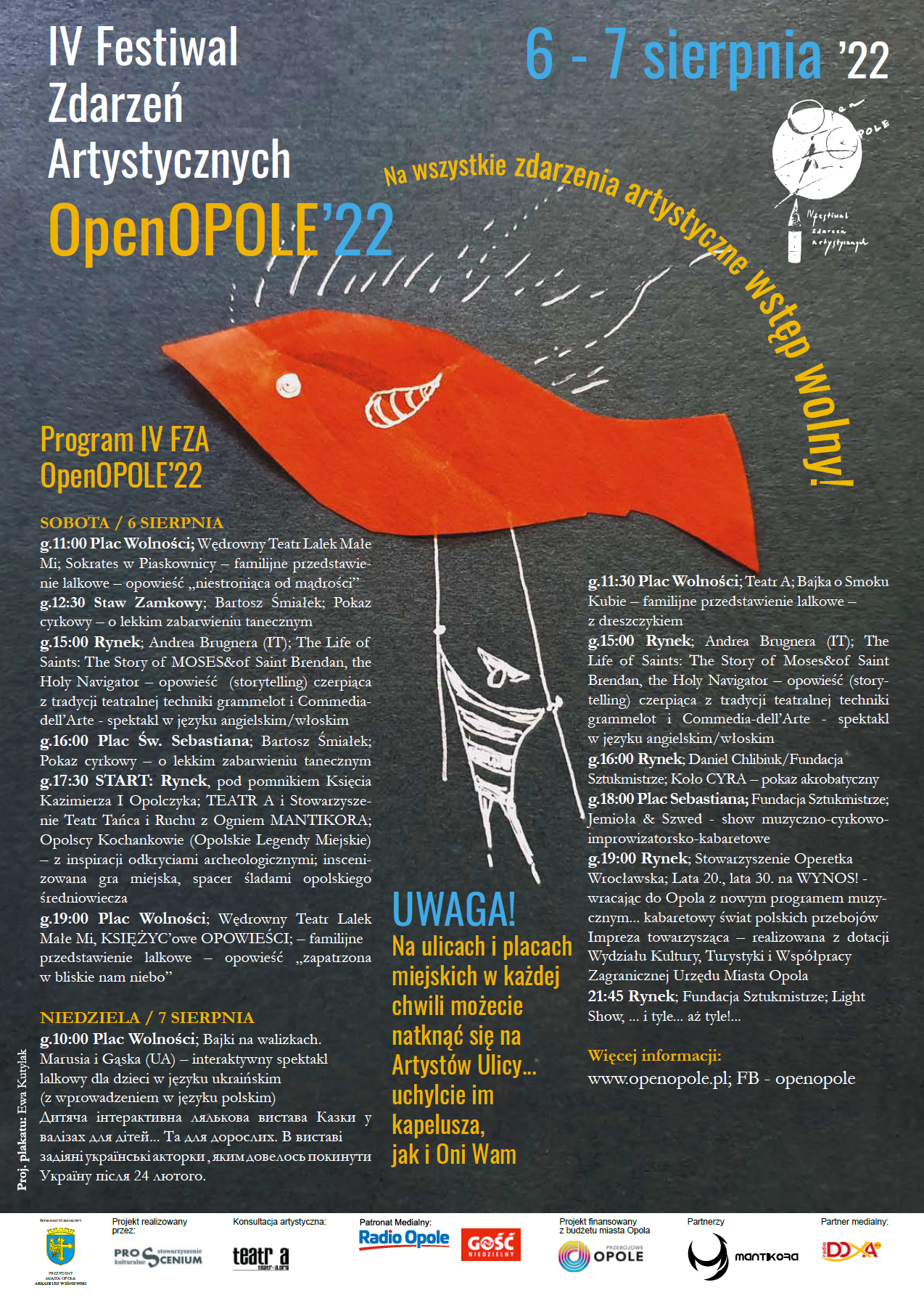 Program IV Festiwalu Zdarzeń Artystycznych OpenOPOLE'22 znajduje się na stronie: