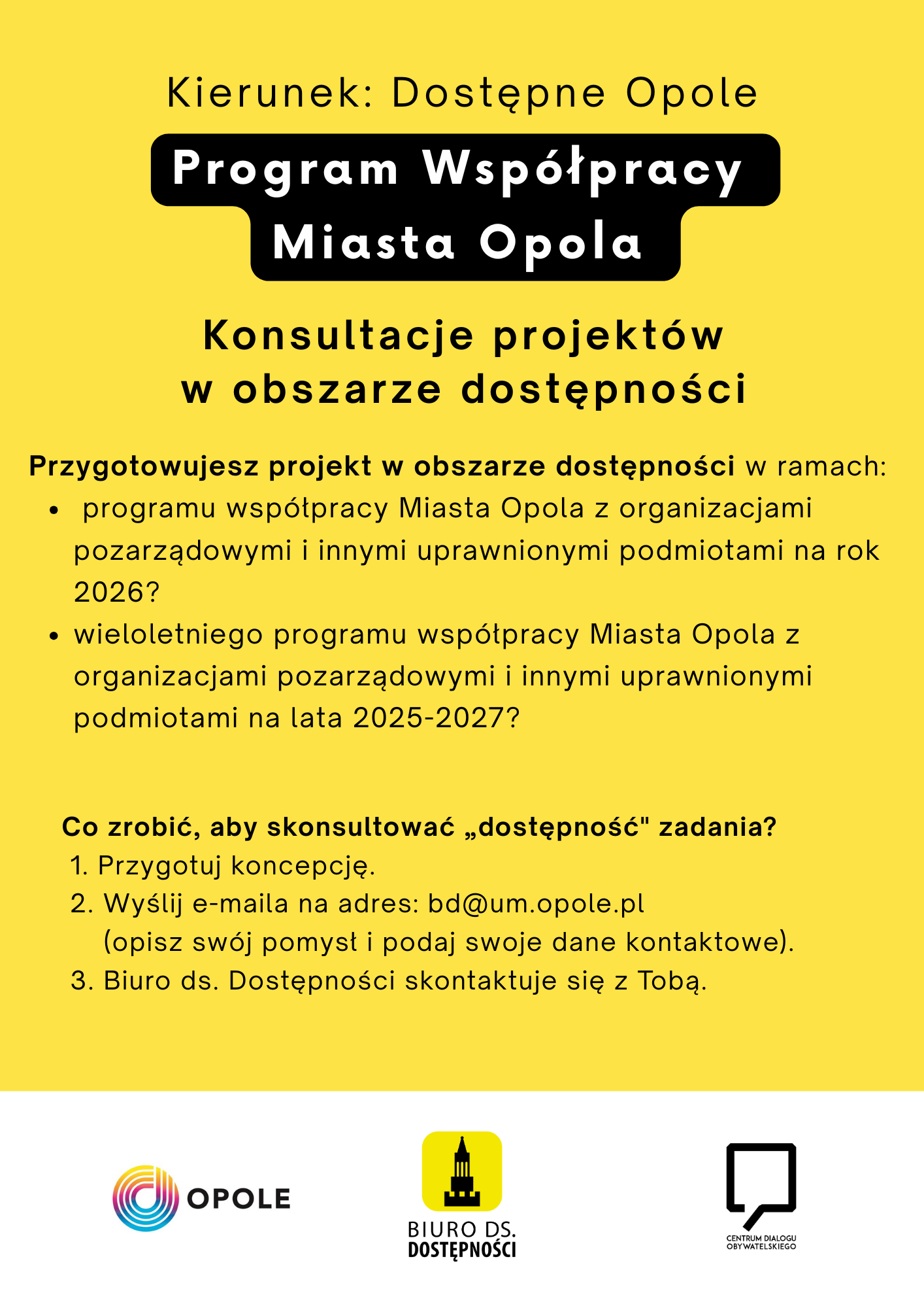 um [dot] opole [dot] pl (opisać pomysł i podać dane kontaktowe). Biuro ds. Dostępności nawiąże kontakt.