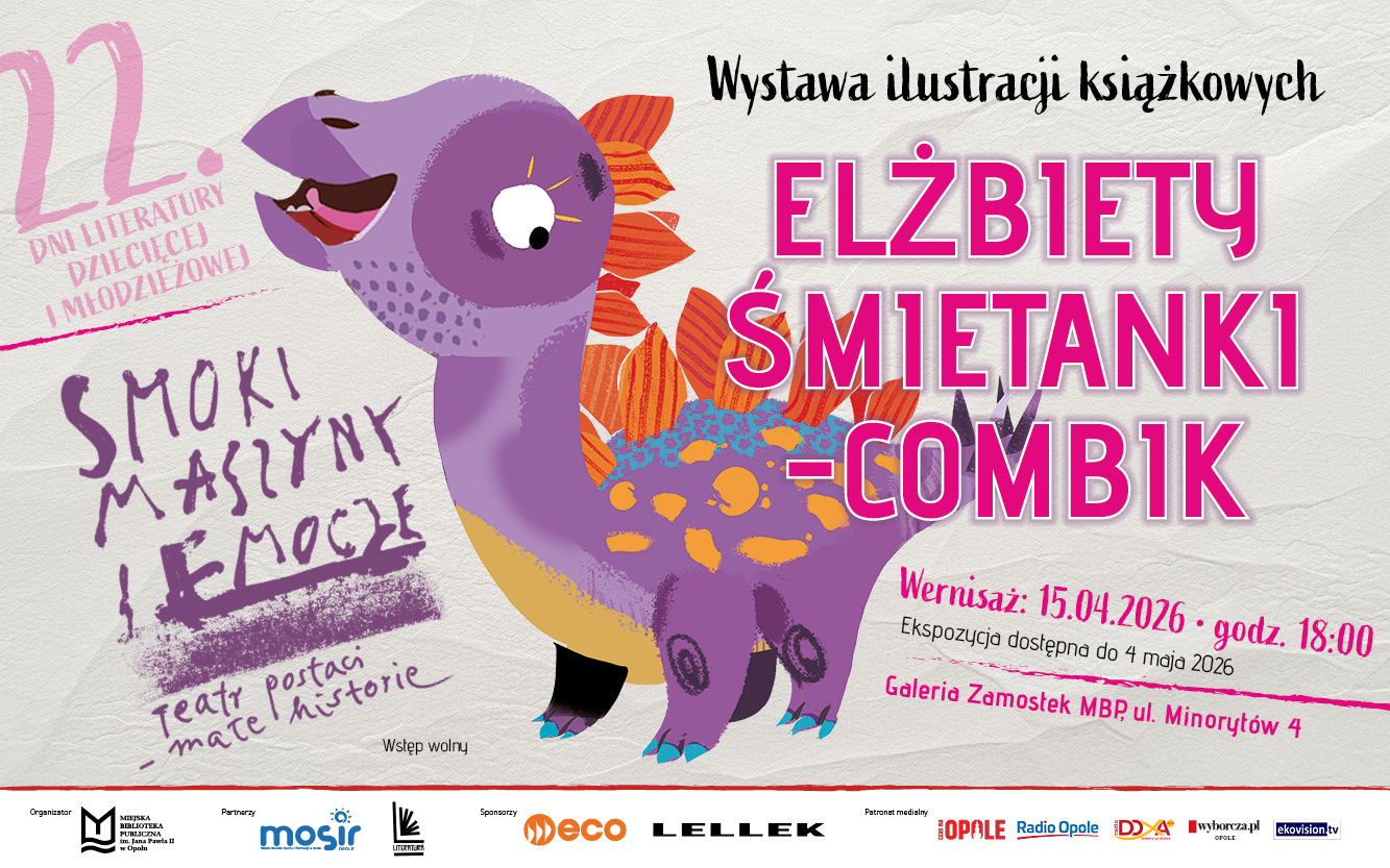 Zapraszamy na wystawę towarzyszącą 22. Dniom Literatury Dziecięcej i Młodzieżowej „Smoki, maszyny i emocje. Teatr postaci – małe historie” autorstwa Elżbiety Śmietanki-Combik. Wernisaż wystawy ilustracji książkowych odbędzie się 15 kwietnia o godz. 18:00 w Galerii Zamostek MBP.