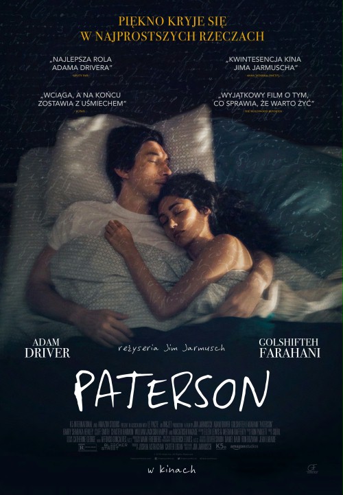 Paterson (Adam Driver) jest kierowcą miejskiego autobusu. Niczego mu nie brakuje. Kocha swoją pełną szalonych pomysłów żonę (Golshifteh Farahani), która każdego dnia tworzy nowy plan na przyszłość. Mężczyzna ma czas na swoją pasję (pisanie wierszy), spacery z psem i spotkania z grupą zaprzyjaźnionych ekscentryków. Jest wśród nich przeżywający zawód miłosny kompan od kufla, wyzwolona singielka przesiadująca wieczorami w barze, czy wiecznie narzekający kolega z pracy, który zazdrości Patersonowi pogody ducha. Jednak na skutek zabawnego zbiegu okoliczności stoicki spokój tytułowego bohatera zostaje poddany próbie.