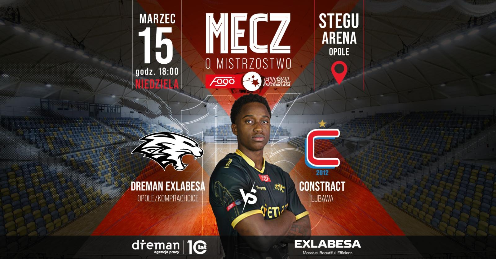 Serdecznie zapraszamy na ekscytujący mecz FOGO Futsal Ekstraklasy, w którym Dreman Exlabesa Futsal Opole Komprachcice zmierzy się z drużyną Constract Lubawa!