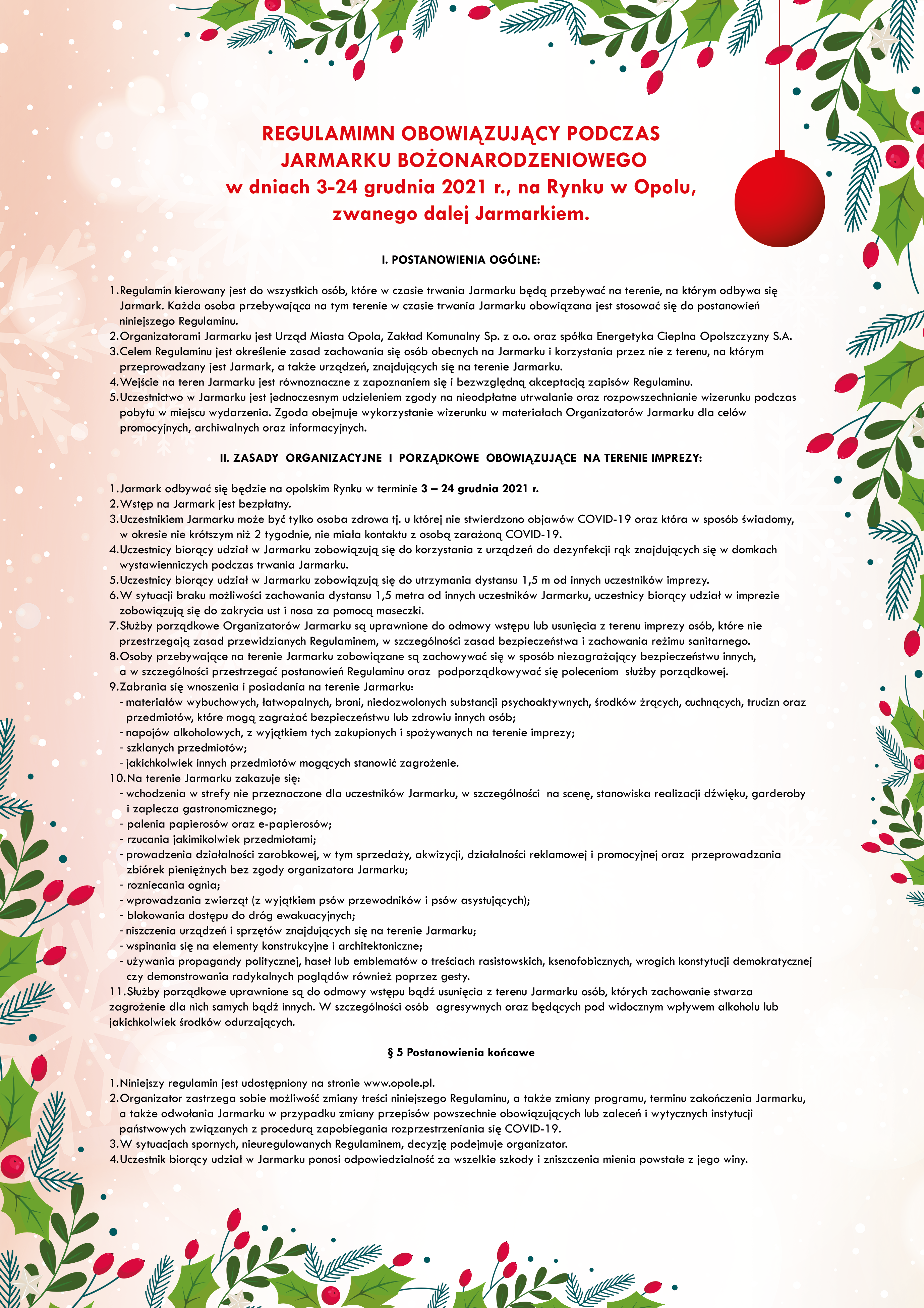 Prosimy o zapoznanie się i stosowanie do zapisów regulaminu jarmarku załączonego pod poniższą informacją, a w szczególności stosowania wymaganych obostrzeń pandemicznych: