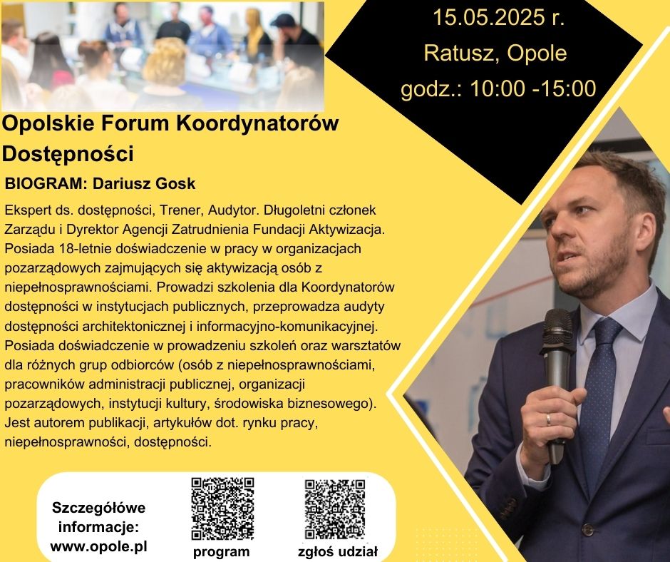 11:50 – 12:20 Dariusz Gosk, ekspert ds. dostępności, trener, audytor